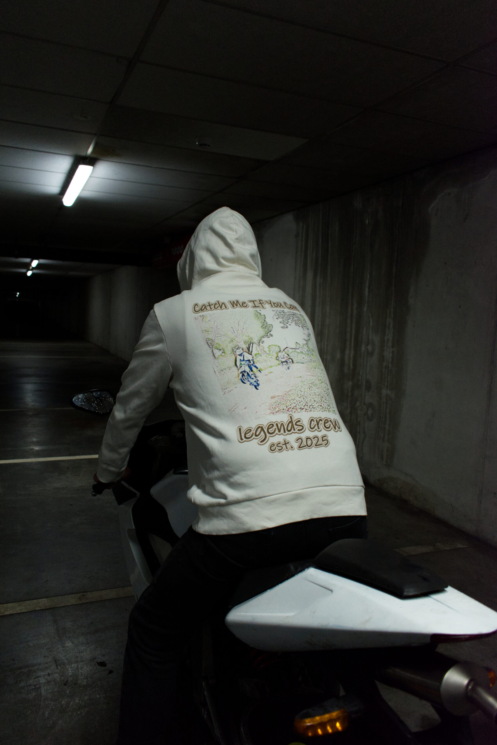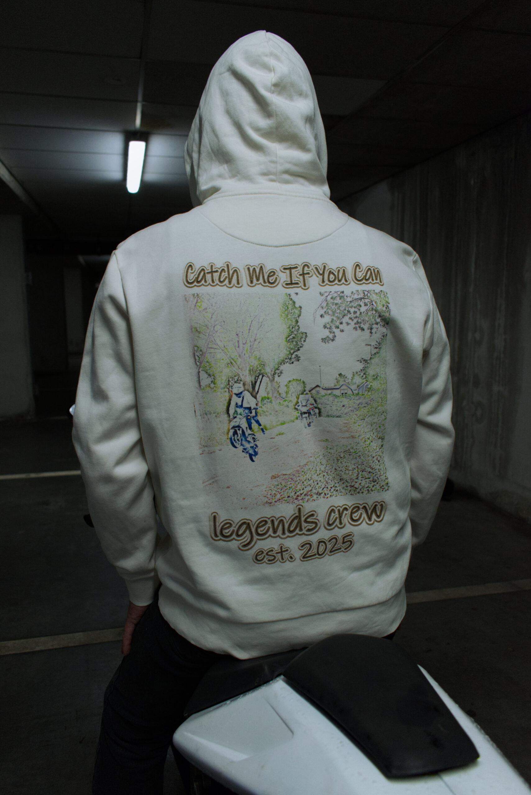 Front: Printed “Catch Me If You Can / legends crew est. 2025” logo