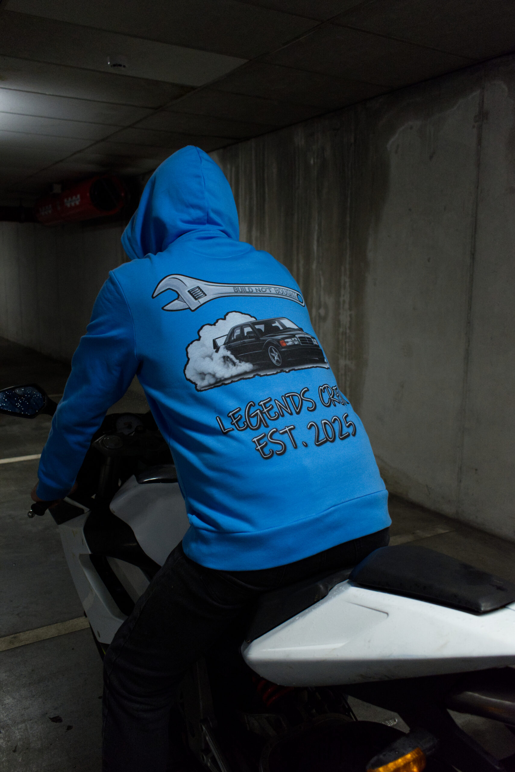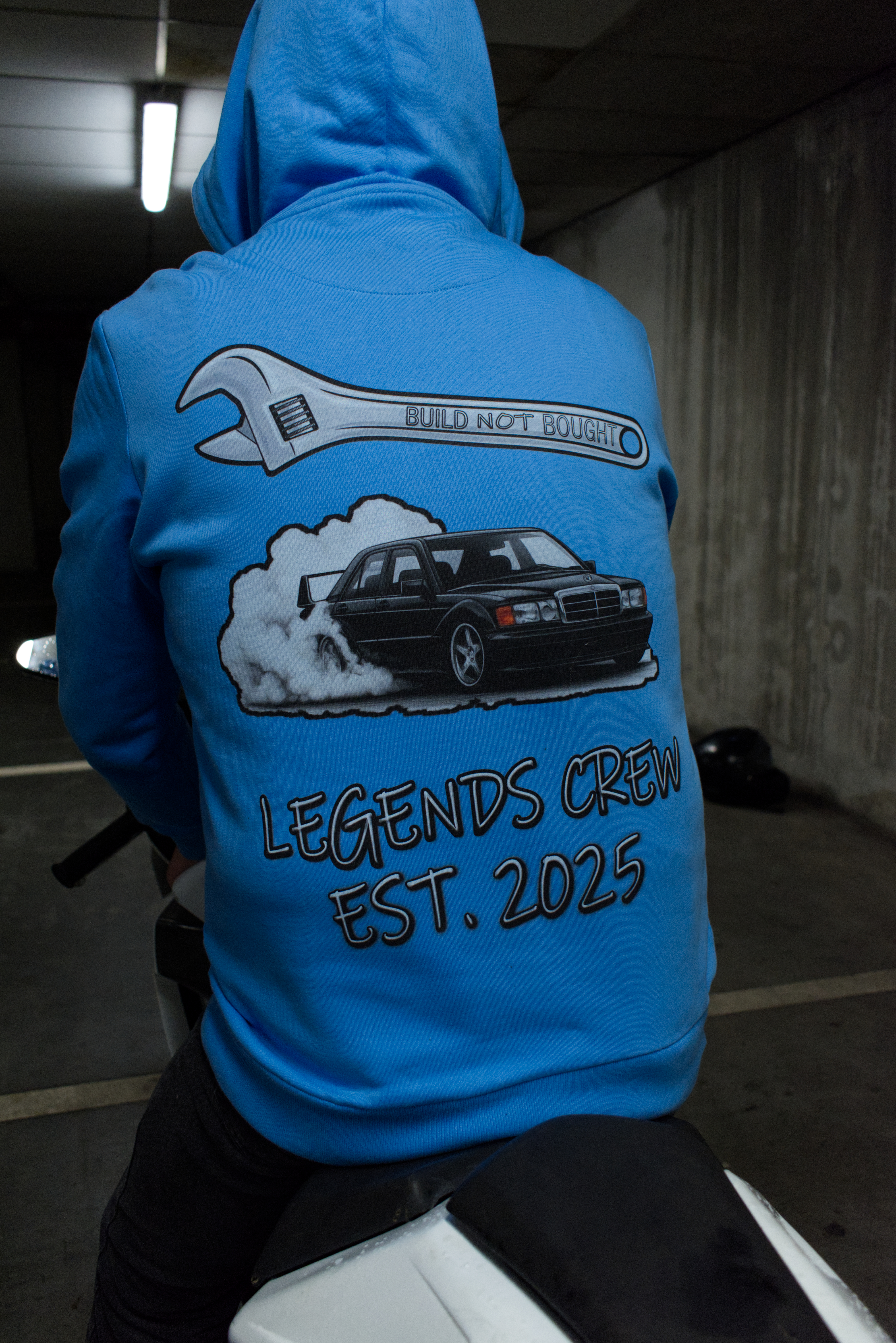 back: Printed  “LEGENDS CREW est. 2025” logo, Mercedes 190 EVO with “Built Not Bought”